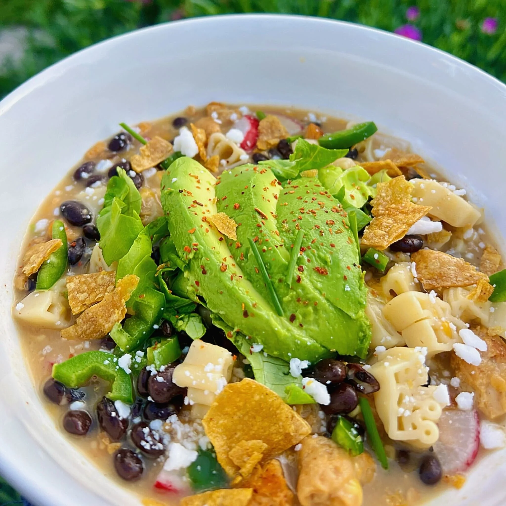 This creation was spawned by my 6-year-old, an up-and-coming vegan culinary talent! She asked for soup with pasta and beans, wanted to add cheese and veggies, and before you know it we had a take on both Pasta Fagioli and Tortilla Soup - “Principessa Pasta e Fagioli e Tortilla Minestra”. 😋🤩