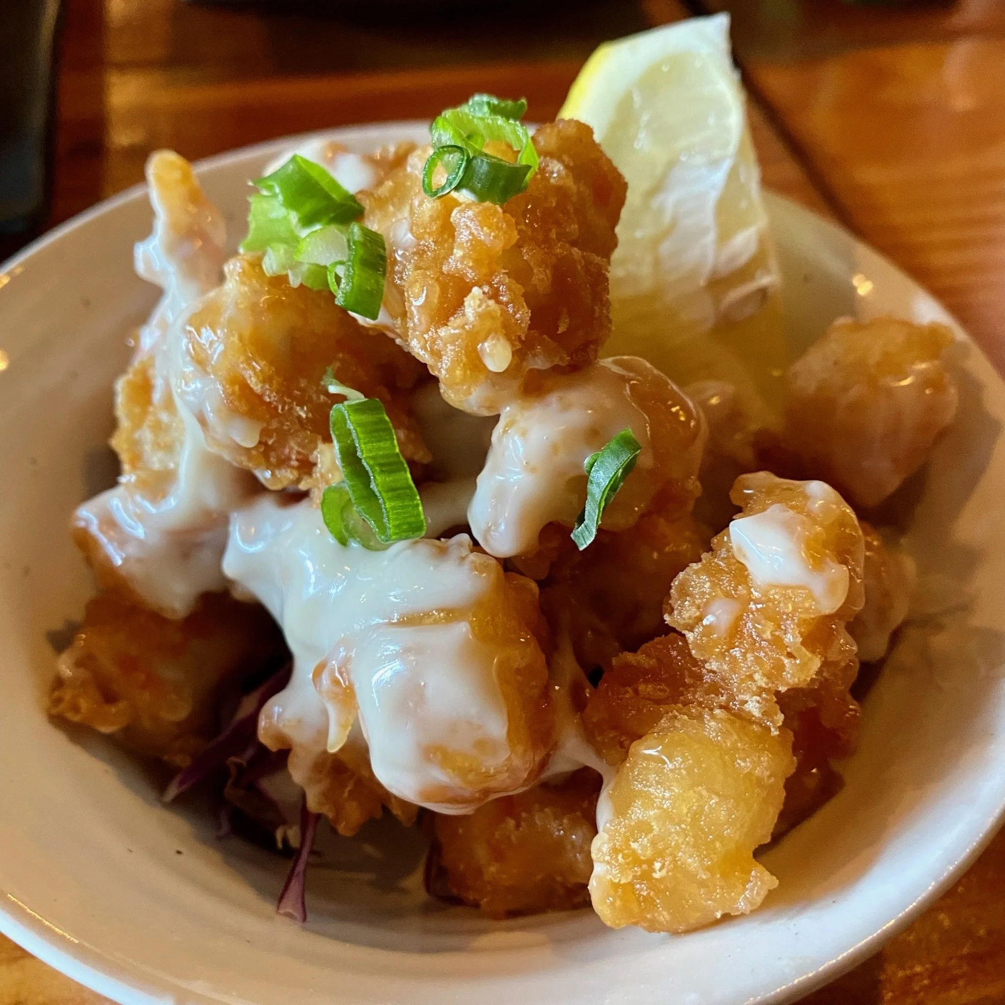 TOP : Seared tuna, Salmon, Ponzu, Eel sauce, Chili oil, Chili powder, Crispy onion, Green onion